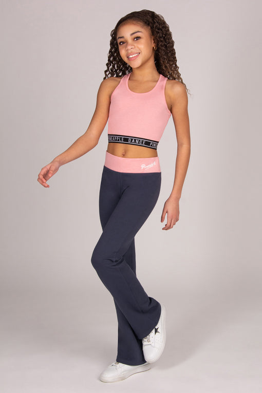 Move with confidence in this Pineapple tape hem midi crop top – a fitted and stretchy essential for dance, workouts, or everyday wear. Made from a breathable and stretchy cotton-rich blend, this racerback midi length crop top features a high neckline, sleeveless cut for full mobility, and a black elasticated 'Pineapple Dance' waistband for a secure, stylish fit, now in our cool, trendy pink coral colour. Matching items available for the full co-ord look.