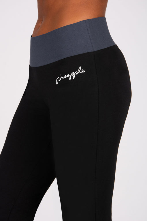 Perfect for your low-impact workouts like yoga or pilates and designed for all-day comfort. Our bestselling full length jersey pant is fitted around the waist to thigh and relaxed out from knee down. With a deep elasticated waistband to comfortably hold you in and fabrication that is both soft and stretchy. Complete with a contrast colour on the waistband that adds a modern, sporty twist and a small logo on the hip.