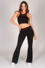 One of our studio essentials! Signature full-length flared jersey trousers in black, great for low-impact workouts, yoga sessions, and dance classes. With superb stretch for a comfy relaxed fit, these flared pants are made to suit everyone. Featuring a stomach flattening waistband and delicate Pineapple branding at the hip, this piece can be easily mixed and matched to any of our essential dance tops.